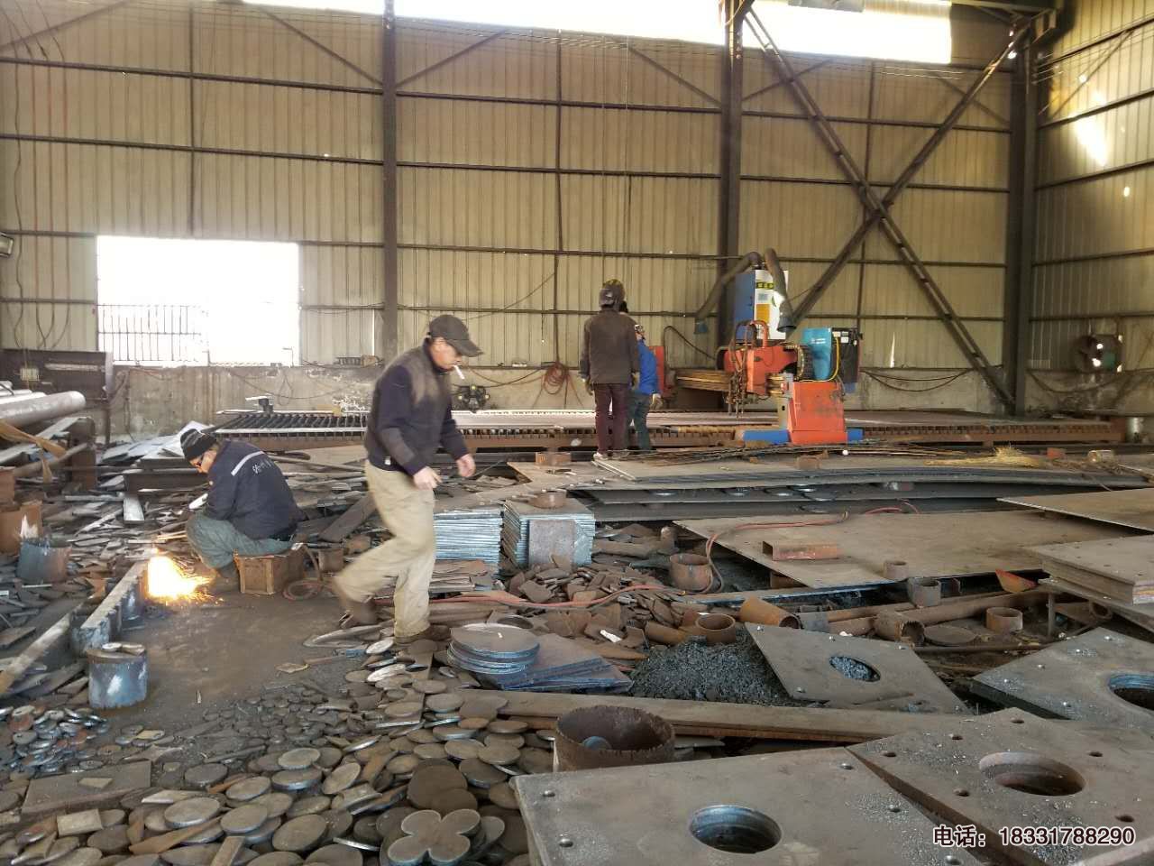 河北標(biāo)志桿廠家擁有龍門式雙火焰數(shù)控切割機2臺,雙等離子數(shù)控切割設(shè)備1臺,小型等離子數(shù)控切割機2臺,都是標(biāo)志桿法蘭盤及加勁肋(筋板)下料的必用設(shè)備,先進(jìn)電腦數(shù)控操作,尺寸誤差控制在+3毫米之內(nèi),相比人工切割無論在技術(shù)含量和效率上都非常的好。